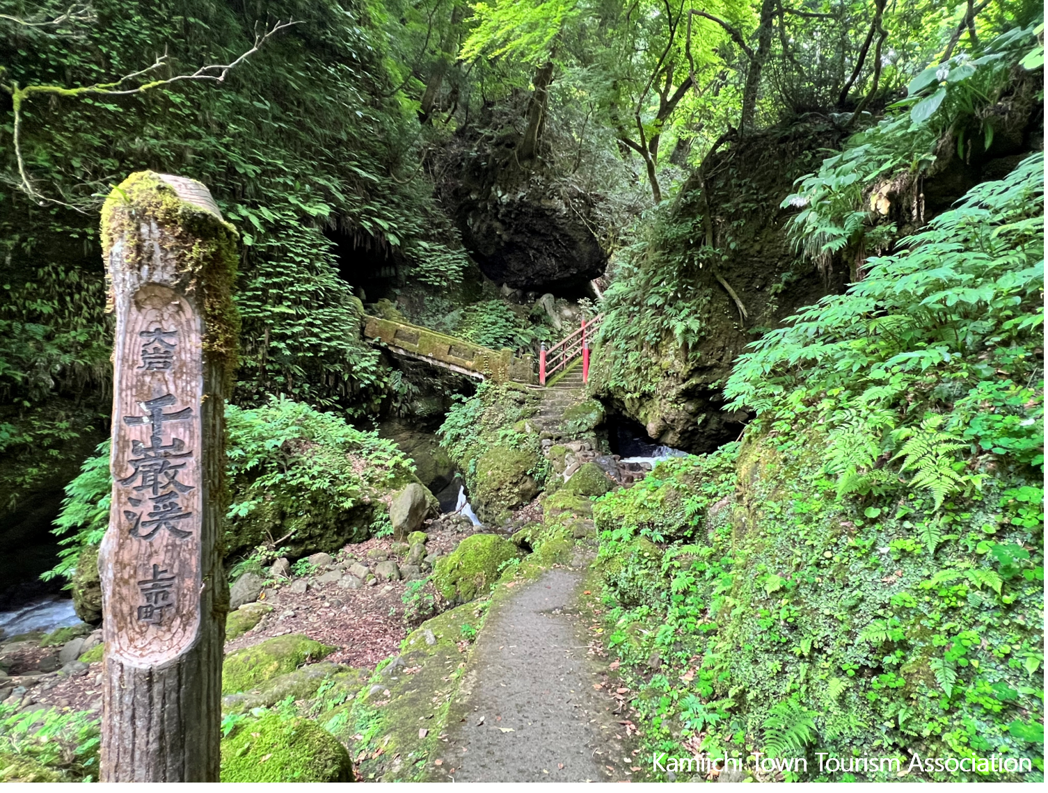 大岩山日石寺のほど近くに位置する渓谷で、清流が岩肌を縫うように流れる自然景観が特徴です。